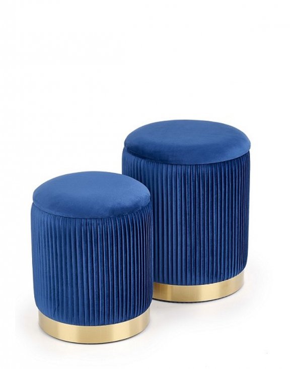 Oba taburety sú v tvare valca, ktorý je zdobený skladanými stranami.