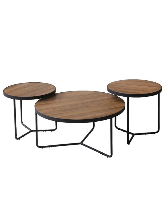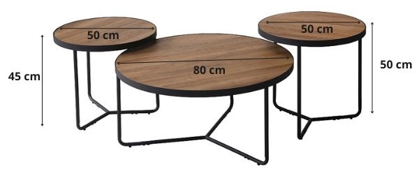 Skladá sa z troch okrúhlych stolíkov rôznej výšky, čo umožňuje ich zaujímavé a praktické usporiadanie.