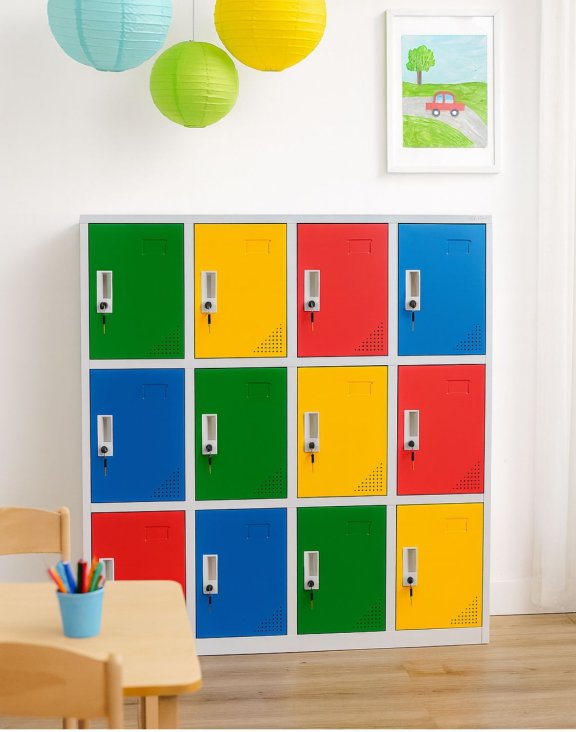 Okrem praktických vlastností plní tento kus nábytku aj dekoratívnu funkciu – farebné dvierka vnášajú do prostredia energiu a pozitívne emócie, ktoré podporujú kreatívnu a priateľskú atmosféru vo vzdelávacích priestoroch.