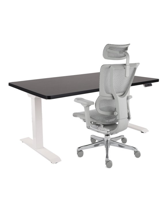 Set kancelárskeho kresla Ioo 2 a nastaviteľného písacieho stola Alto 101 Black je perfektným spôsobom, ako vytvoriť plne ergonomické pracovné miesto.