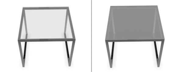 Stolík Dallas je k dispozícii s dvoma typmi dosiek – sklenenou a matnou sklenenou.