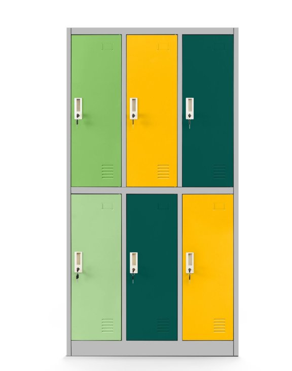 Každá priehradka je vybavená samostatnými dvierkami so zámkom na kľúč, čo zvyšuje bezpečnosť uložených predmetov. Vnútorný priestor je navrhnutý na pohodlné uloženie oblečenia, obuvi, tašiek, batohov aj drobných osobných vecí.