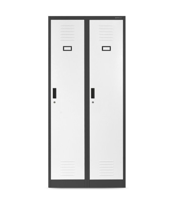 Šatníková skriňa Kacper značky Jan Nowak v antracitovo-bielej farbe dokonale doplní priestor pre zamestnancov a zabezpečí komfortný úložný priestor a najvyššiu kvalitu spracovania.