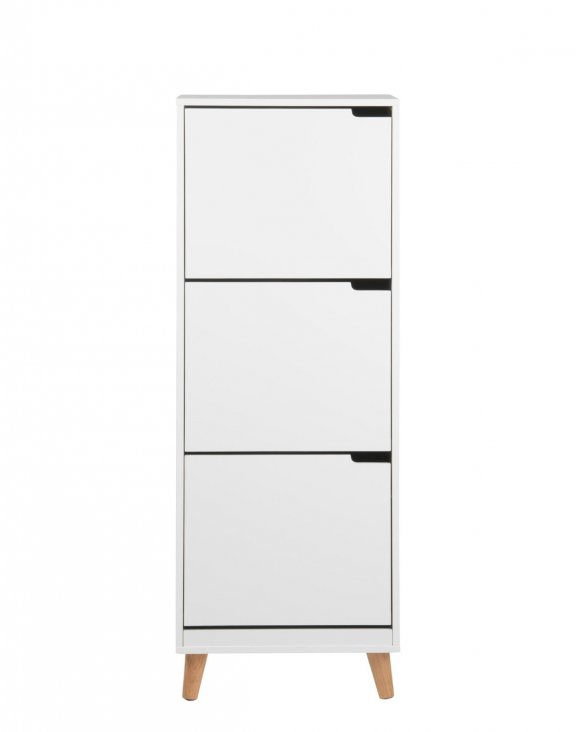 Skrinka má tri, veľmi priestranné priehradky, kam sa bez problémov zmestí veľké množstvo topánok.