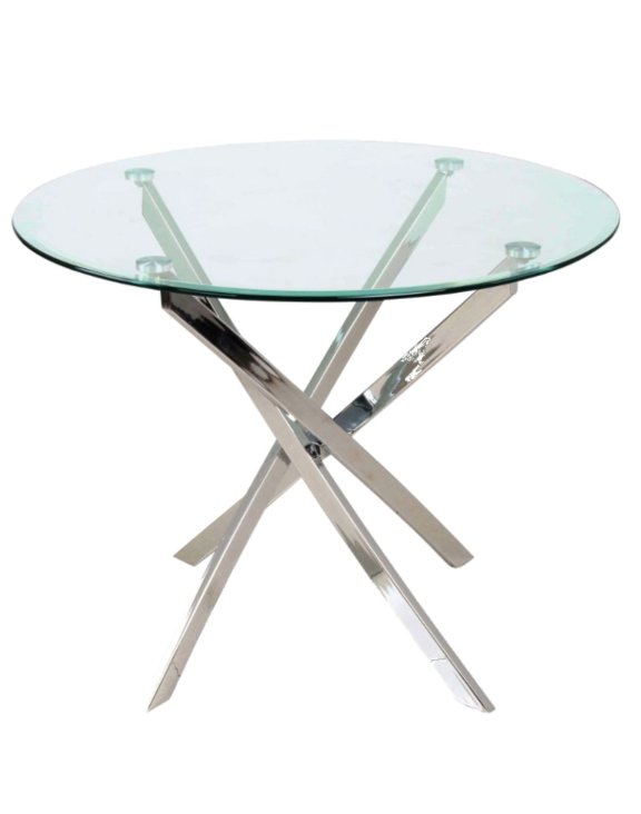 Okrúhla doska s priemerom 90 cm je vyrobená z transparentného tvrdeného skla, ktoré dodáva interiéru ľahkosť a opticky zväčšuje priestor.