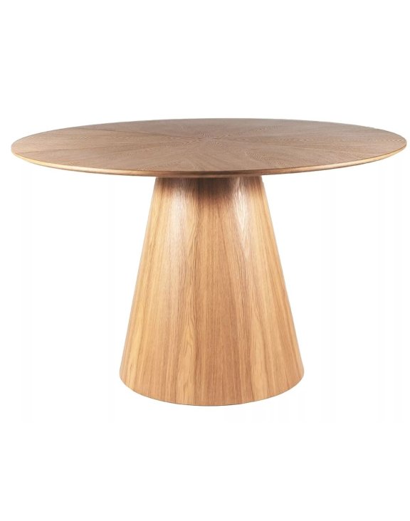 Okrúhla doska s priemerom 120 cm je vyrobená z MDF dosky s dyhou v dekore prírodného duba, ktorý dodáva interiéru teplý a útulný charakter.