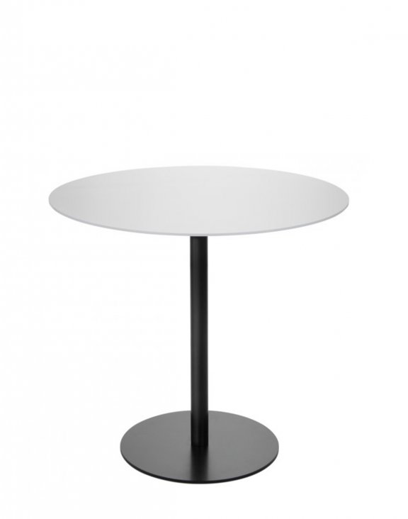 Stôl Jula Low má oceľovú stolovú dosku s priemerom 800 mm a hrúbkou 6 mm.