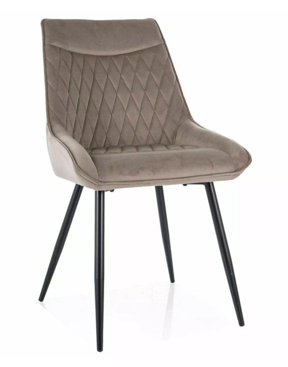 Sedadlo a operadlo sú potiahnuté mäkkým zamatom s elegantným prešívaním v tvare kosoštvorcov, ktoré dodáva stoličke jedinečný charakter a zároveň zaručuje pohodlie aj pri dlhšom sedení.