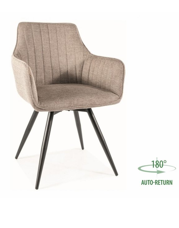 Mäkké čalúnenie, ergonomicky tvarované podrúčky a otočná funkcia s automatickým návratom z nej robia ideálnu voľbu do jedálne, obývacej izby, k toaletnému stolíku alebo do domácej pracovne.
