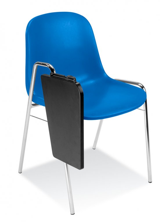 Stolička zo série BETA na kovovom, chrómovanom ráme, ľahká a veľmi stabilná s písacím panelom.