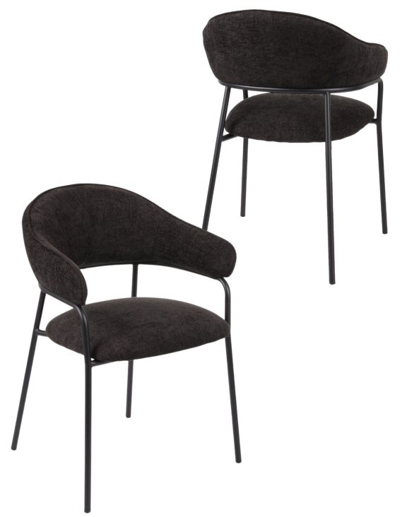 Kovové čierne nohy a rám podčiarkujú moderný charakter nábytku, zatiaľ čo podrúčky zvyšujú pohodlie pri používaní, vďaka čomu je stolička nielen dizajnová, ale aj veľmi pohodlná.