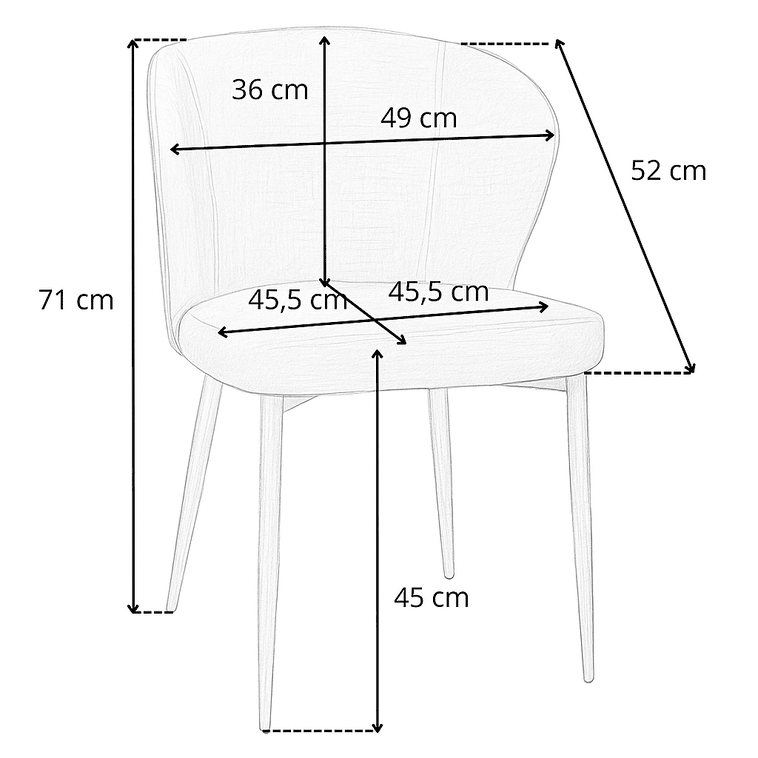 Model je vybavený čiernymi kovovými nohami, ktoré stoličke dodávajú moderný vzhľad a výborne ladia s rôznymi štýlmi zariadenia – od minimalistických až po industriálne.