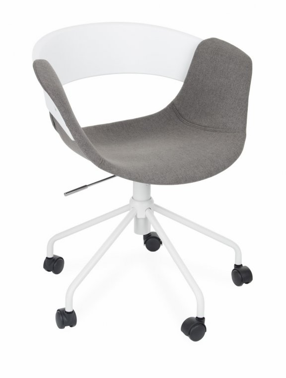 Otočná stolička Forma Move má výrazne tvarované operadlo vyrobené z odolného a estetického bieleho plastu (polypropylén).