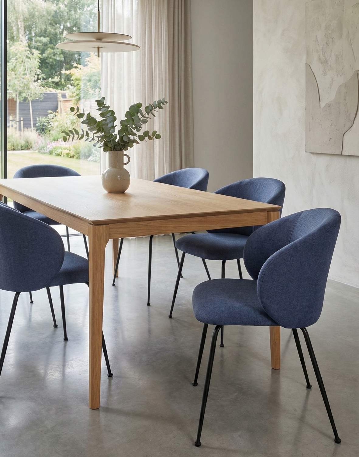Látka Maya v modrej farbe je mäkká a príjemná na dotyk, jej jemná štruktúra pripomína kašmír. Decentný vzor inšpirovaný tkanou textúrou dodáva materiálu eleganciu a skvele zapadne do moderných aj škandinávskych interiérov.