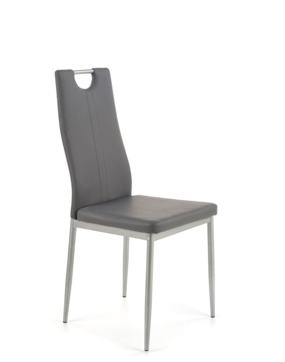 Elegantná jedálenská stolička K202 značky Halmar v sivej farbe je určená pre priestranné jedálne, štýlové kaviarne alebo kancelárske priestory, vrátane konferenčných miestností.