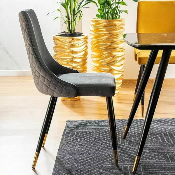 Čalúnená mäkkým zamatom Bluvel, zdobená kosoštvorcovým prešívaním na operadle, skvele zapadne do moderných aranžmánov jedálne aj obývacej izby.