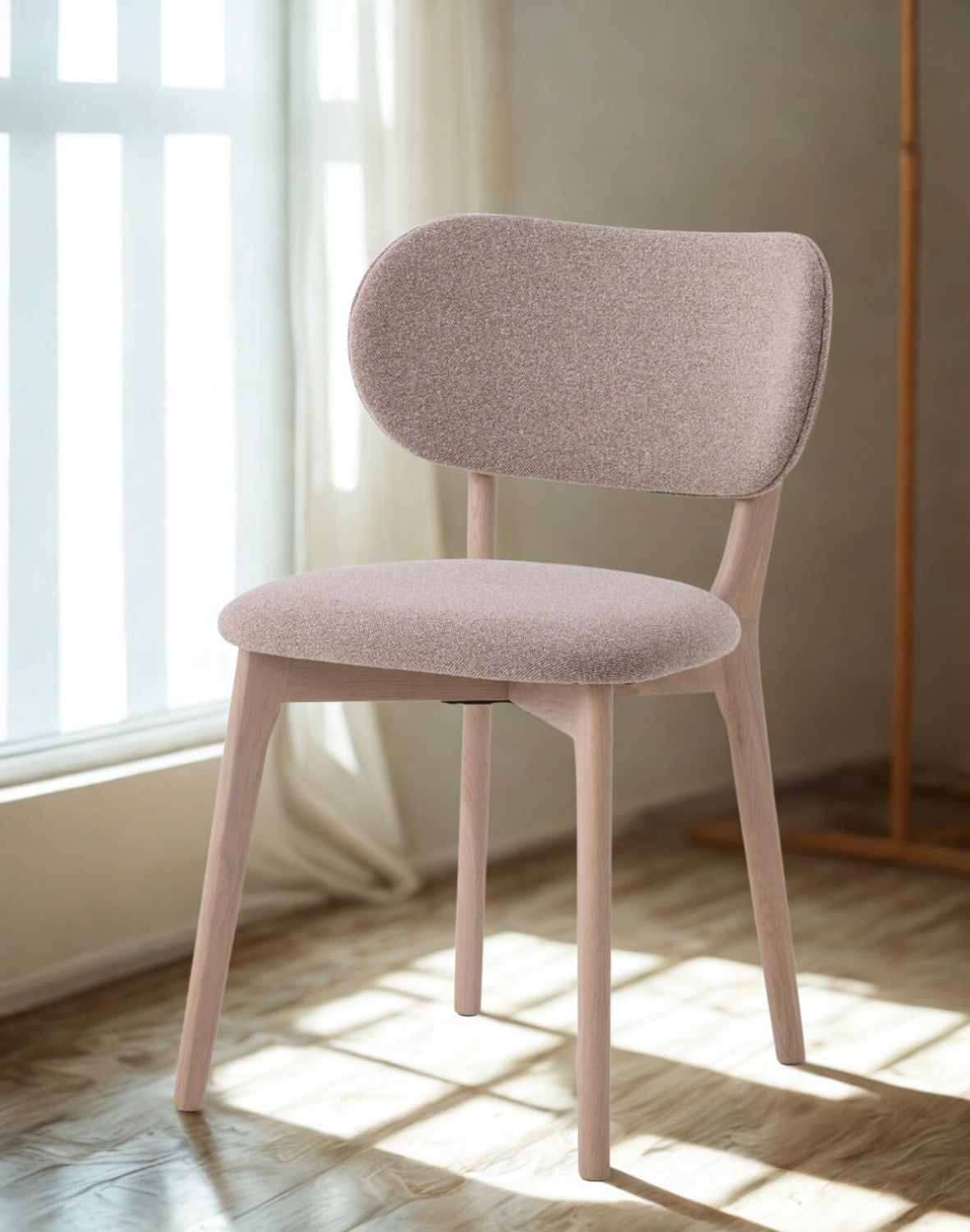 Stabilný základ tvoria nohy z bieleného dubového dreva, ktoré dodávajú stoličke ľahkosť a prirodzený pôvab.