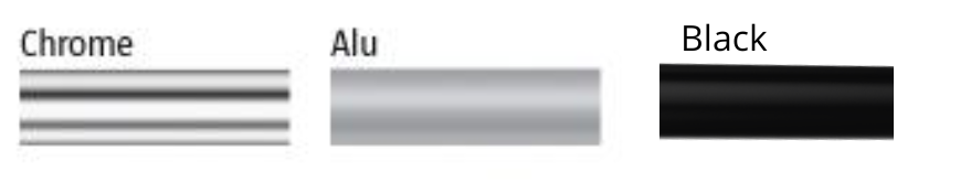 Rám je veľmi pevný a stabilný a je dostupný v 3 farbách: alu (svetlo šedá, matná), chróm (lesklá) a čierna.