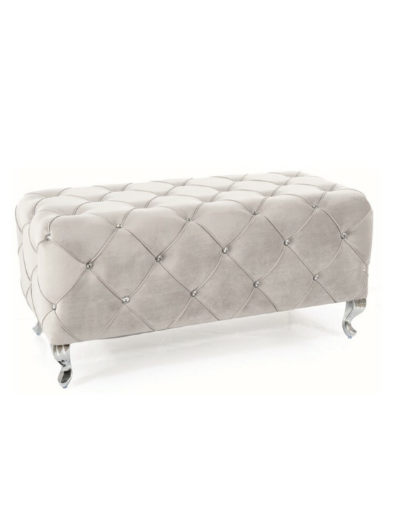 Štýlové chrómované nožičky dodávajú ľahkosť a eleganciu, vďaka čomu sa taburet skvele hodí do obývačky, predsiene, spálne alebo šatníka.