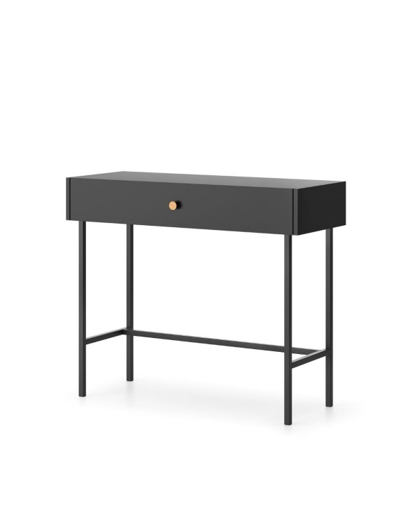 Toaletný stolík Diva v matnej čiernej farbe je esenciou moderného štýlu, ktorý spája jednoduchosť tvarov s funkčnosťou.