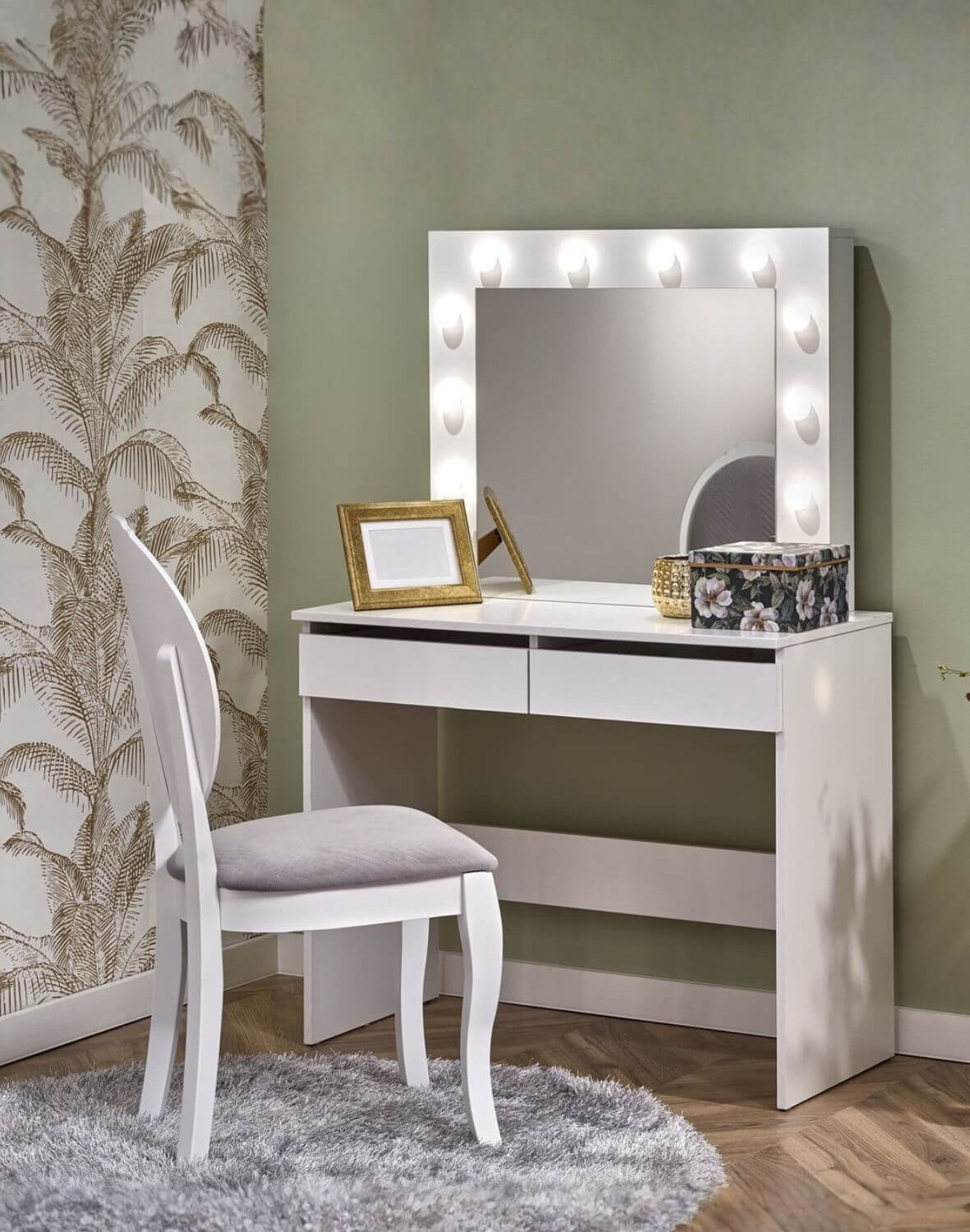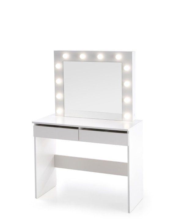 Toaletný stolík Hollywood v elegantnom bielom odtieni je spojením luxusného dizajnu a praktického využitia.