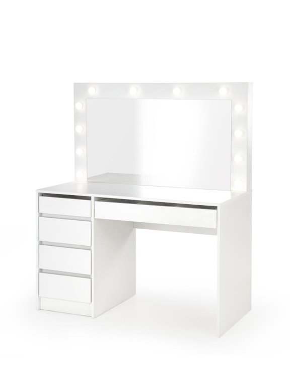 Toaletný stolík Hollywood XL značky Halmar v elegantnom bielom odtieni predstavuje spojenie luxusného dizajnu a praktického využitia.