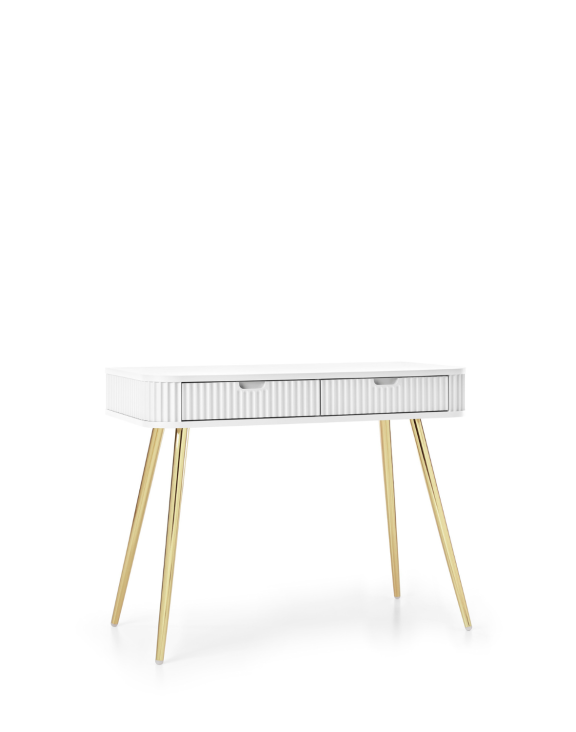 Toaletný stolík stojí na pevných kovových nohách v zlatej farbe, takže ho ľahko zladíte s rôznymi štýlmi interiéru.
