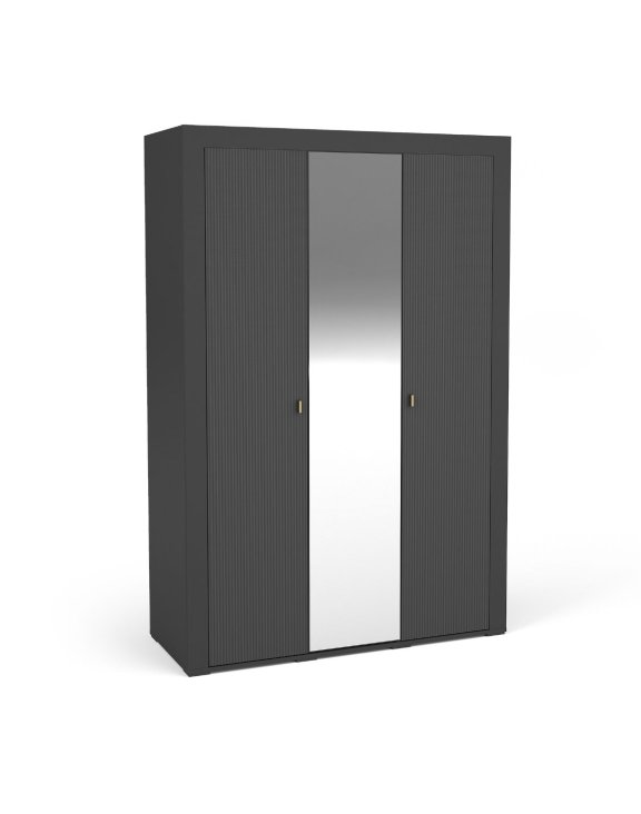 Trojdverová šatníková skriňa so zrkadlom v módnej čiernej farbe z kolekcie MOSSA.