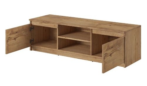 TV stolík Dingo 120 cm je ideálnou voľbou pre tých, ktorí ocenia prirodzený vzhľad dreva, jednoduché línie a praktické riešenia na uloženie multimediálnej techniky.