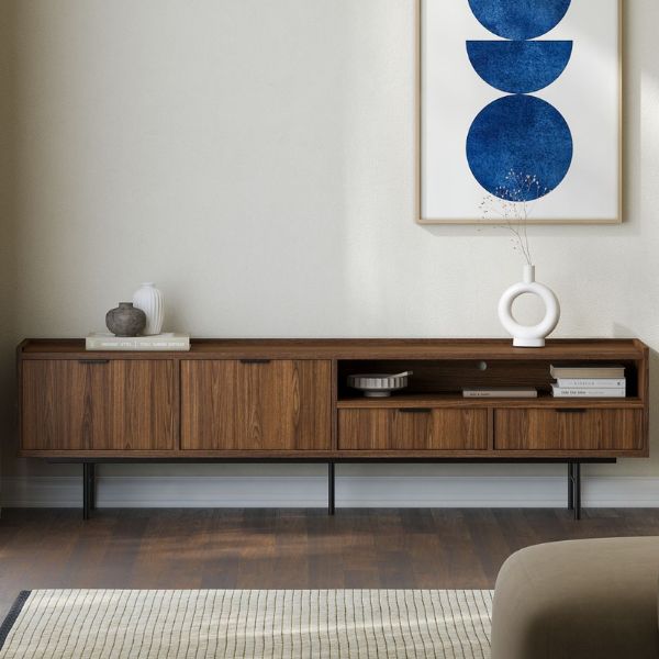 TV stolík Edison Brown Warmia Walnut 200 cm je praktickým a štýlovým riešením, ktoré vnesie do vašej obývačky poriadok a moderný charakter.