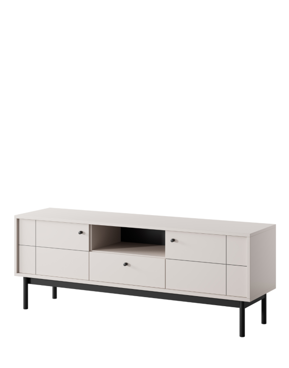 TV skrinka Japandi (RTV154) v odtieni kašmír od značky Piaski je elegantný a funkčný prvok interiérového dizajnu, spájajúci estetiku štýlu Japandi s praktickým prevedením.