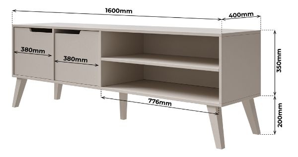 Vďaka rozmerom 160 × 55 × 40 cm stolík ponúka dostatok priestoru pre TV, príslušenstvo aj dekorácie.