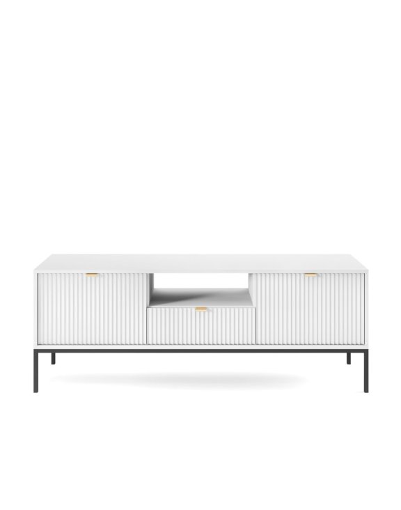 TV stolík Nova biela (RTV154) značky Piaski je elegantné a funkčné riešenie pre obývaciu izbu, ktoré zaujme moderným štýlom a vysokou kvalitou spracovania.