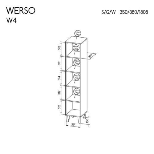 Úzka knižnica Werso W4 vynikne samostatne, no ešte lepšie sa bude vynímať v kombinácii s ďalšími prvkami z kolekcie Werso.
