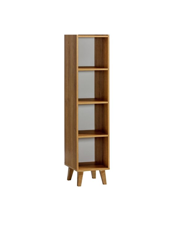 Tento vysoký regál sa inšpiroval škandinávskym štýlom vďaka dreveným nožičkám a minimalistickému dizajnu.