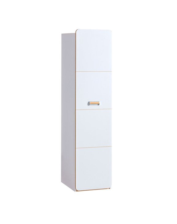 Vysoká a úzka konštrukcia bielizníka umožňuje maximálne využitie priestoru aj v menších miestnostiach. Za plnými dvierkami sa nachádzajú praktické police, ktoré sú ideálne na uloženie poskladaného oblečenia, uterákov, posteľnej bielizne alebo iných domácich doplnkov.