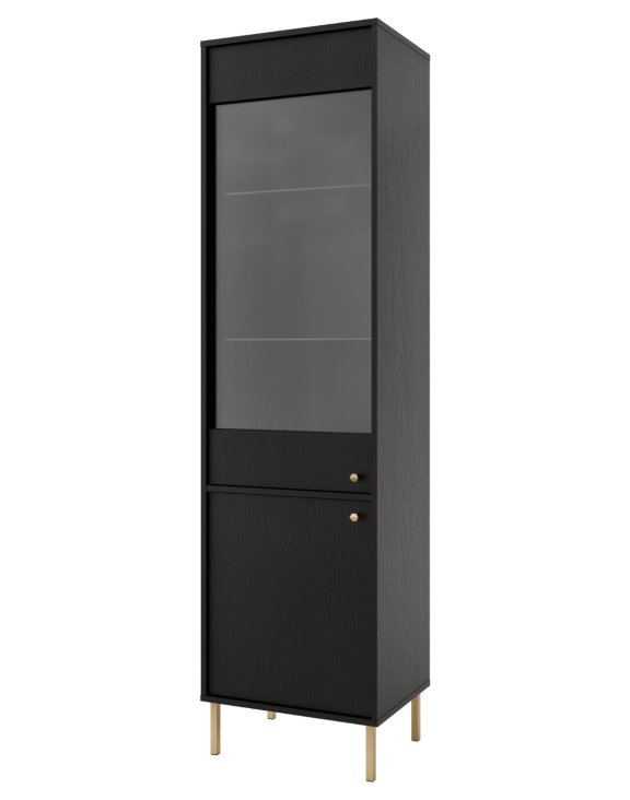 Vitrína Tokyo 2 v čiernom prevedení dokonale spája moderný minimalizmus s prirodzenou eleganciou a skvele sa hodí do obývacej izby, jedálne aj pracovne.