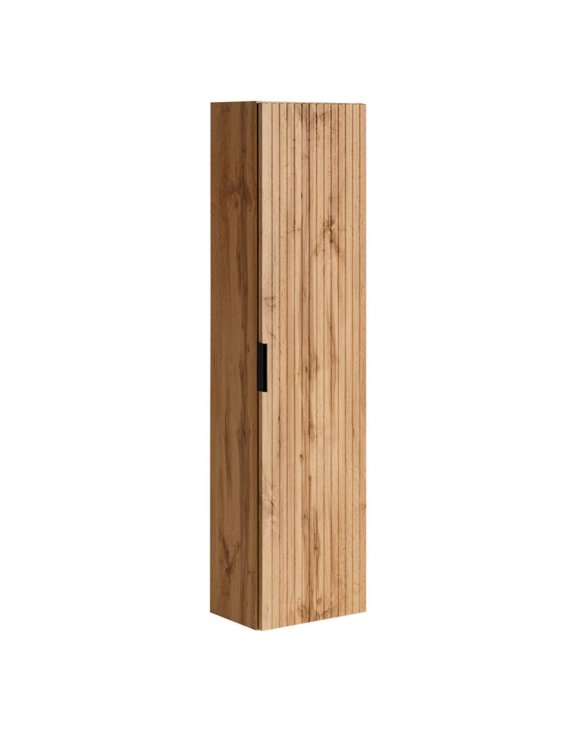 Vysoká kúpeľňová skrinka Adel Oak s jednými dvierkami uľahčuje udržiavanie poriadku v kúpeľni a zodpovedá súčasným dizajnovým trendom.
