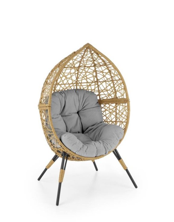 Kreslo má tvar vajíčka, je starostlivo utkané zo syntetického ratanu v prírodnej farbe.