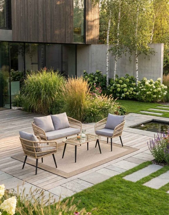 Vďaka prirodzenému dizajnu sa zostava dokonale hodí do rôznych štýlov oddychových priestorov, či už v modernom alebo klasickom štýle.