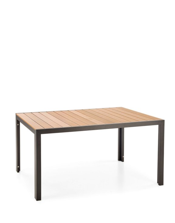 Doska v hnedej farbe je vyrobená z polystyrénu, ktorý verne imituje drevo, ale zároveň je odolný voči poveternostným vplyvom. Konštrukcia z čierneho hliníka zaručuje stabilitu, dlhú životnosť a podčiarkuje moderný vzhľad nábytku.